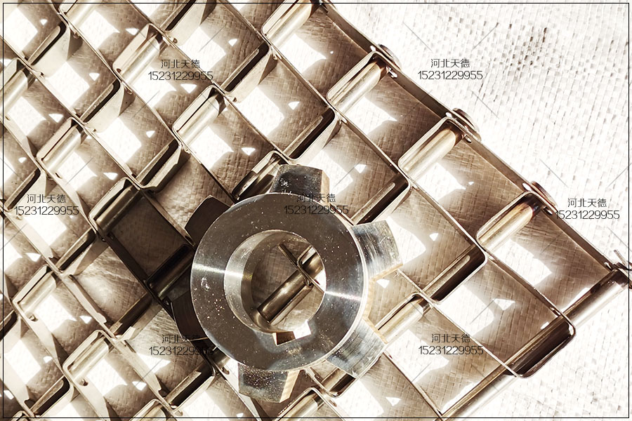 帶鏈條的馬蹄鏈式金屬輸送帶的鏈條節距25.4mm,選擇的是四分雙節距大滾珠鏈條傳送,這種鏈條在運輸過程中就好比火車在軌道上爬行一樣,因為有鏈條鏈輪來傳送,長時間使用也不會出現輸送帶跑偏與跳齒的現象。