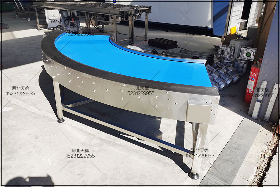 轉彎皮帶輸送機輸送帶有PVC、PU等多種材質,除用于普通物料的輸送外,還能實現耐油、耐腐蝕、防靜電等有特殊要求物料的輸送。 銜接轉彎皮帶輸送機選擇食品輸送帶,可實現食品、制藥、日用化工等行業的要求。