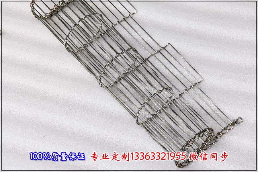 乙型網帶又稱乙字型網帶、巧克力網帶、梯形網帶 特點:乙字網帶一般采用亮硬不銹鋼材料或者高碳鋼經過特制模具彎曲壓制編織而成,網寬從200到6000mm不等,通常情況下用乙字網帶輪定位傳動,確保正確穩定的運轉。開孔率大,通風性好,排水性佳。 應用:廣泛用于各個電子行業線路板的化銀,固熔,烘干,食品行業用于巧克力、餅干、魚片烘烤、速凍、干燥之用、乙型網帶邊緣可以安裝鏈條用鏈條帶動網帶驅動。