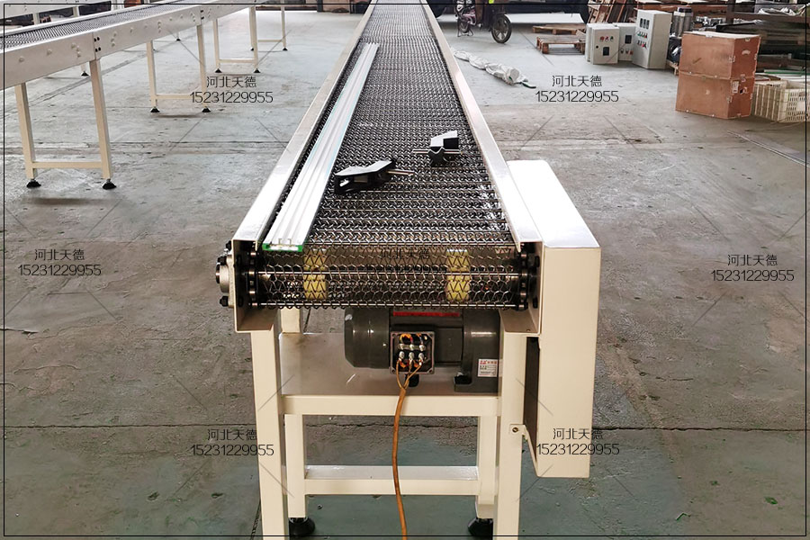 鏈板輸送機是由電機、傳動齒輪、輸送鏈板、軸承、漲緊裝置等進行組合而的。鏈板輸送機可以平面輸送、提升輸送、轉彎輸送。在五金、機電、機械制造、藥品、食品等等行業應用廣泛。
