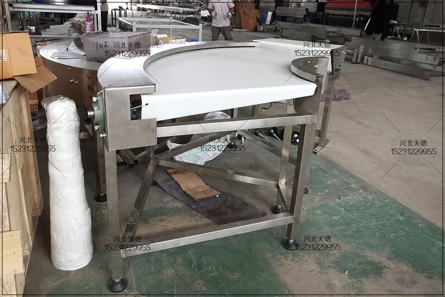 6、轉彎輸送的角度(如90度轉彎,45度角轉彎,180度轉彎)。 為了保證貨物能夠平穩輸送,在任何時間點都至少有三只輥筒與輸送物保持接觸。對軟袋包裝物要加托盤輸送。