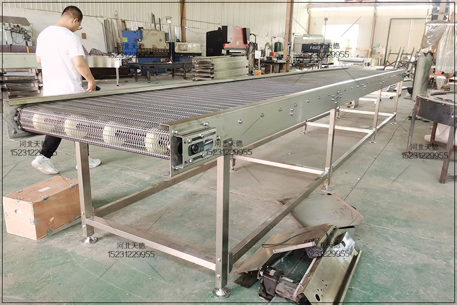 網(wǎng)帶輸送機(jī)在實(shí)際的生產(chǎn)應(yīng)用中,具有很多優(yōu)點(diǎn),它輸送量大,承重能力強(qiáng),適合整狀及散狀的物料輸送。并且網(wǎng)帶輸送機(jī)具有 結(jié)構(gòu)簡(jiǎn)單,運(yùn)行穩(wěn)定的特點(diǎn),在工業(yè)化生產(chǎn)的進(jìn)行中起著具足輕重的作用。網(wǎng)帶輸送機(jī)輸送量大,運(yùn)距長(zhǎng),對(duì)線路適應(yīng)性強(qiáng),可靠性高。