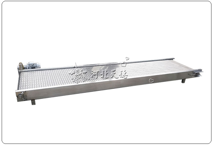 不同輸送環境所使用的鏈板輸送機型號不一樣,不同型號鏈板輸送機功能和成本也不一樣,所以鏈板輸送機型號的選擇是一個很重要的環節。首先根據輸送物料特性來確定鏈板輸送機材質,食品輸送、高溫輸送、腐蝕環境送要選用不銹鋼材質,自然環境輸送用碳鋼或鍍鋅鏈板都可。然后根據輸送物料形狀和單位面積重量來選擇鏈板型號、鏈條型號,常規來講大體積、大重量用折彎型鏈板輸送機,密度小的散碎物料用合頁型鏈板輸送機,輕型高速輸送那就選擇平頂鏈板輸送機。 在金屬件輸送和廢料輸送中經常用到鏈板輸送機,鏈板輸送機的型號和參數是很多的,用戶在選擇時要根據自己的產品來選擇。鏈板輸送機常規型號有平頂鏈板輸送機、折彎鏈板輸送機、合頁鏈板輸送機,其中以合頁鏈板輸送機用的廣泛。